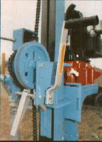 The shuttle is driven by chain attached to a two speed hand winch that provides both hoisting and pull down capabilities. The winch includes a handbrake which is used when the winch ratchet lock is released to lower the rotary. |